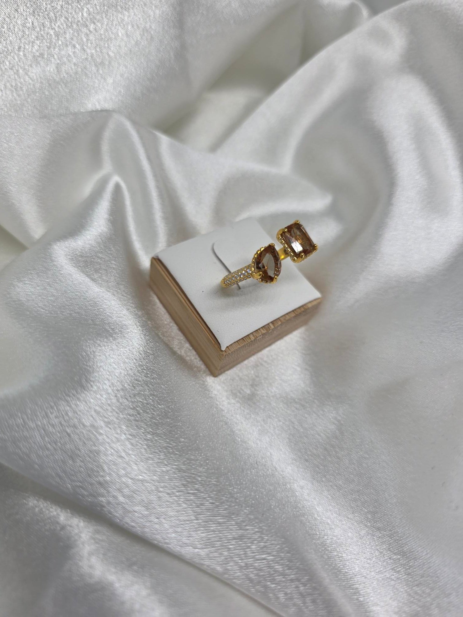La bague AYRA allie élégance et originalité avec ses deux pierres de formes distinctes, sublimées par un anneau délicatement serti de pierres blanches. Ce design raffiné offre un équilibre harmonieux entre modernité et sophistication, mettant en valeur chaque détail pour un porté unique et précieux.