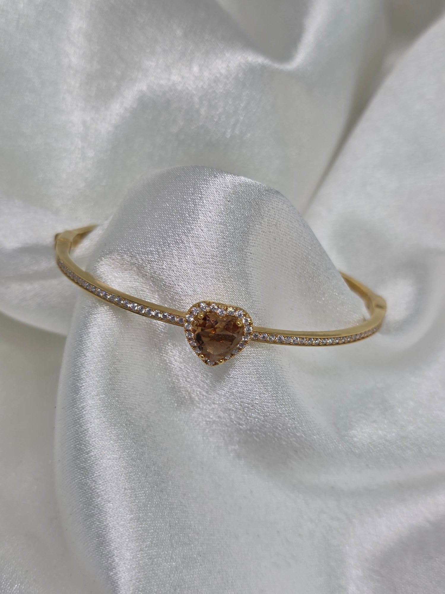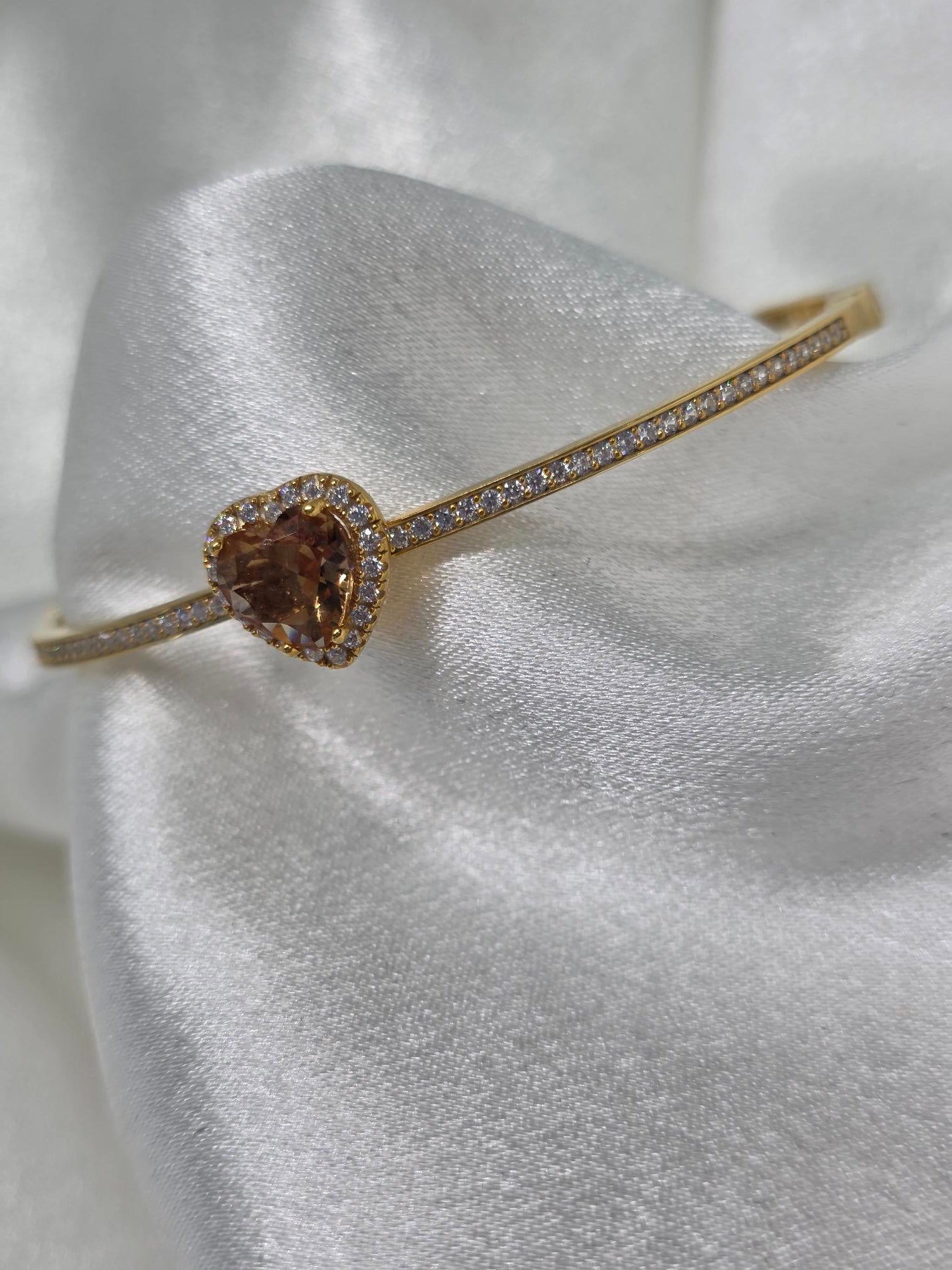 Le bracelet SERAYA présente un design jonc rigide de 6 cm de diamètre, délicatement orné en son centre d’un motif cœur. Sa pierre centrale en Zultanite synthétique offre un éclat remarquable, changeant subtilement de couleur selon la lumière. Ce bijou allie élégance et originalité, parfait pour souligner avec finesse votre poignet tout en apportant une touche unique et précieuse à votre style.